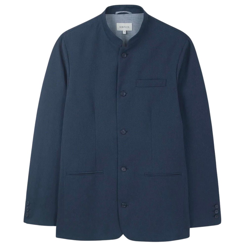 - SIRPLUS Navy Cotton Linen Nehru Jacket