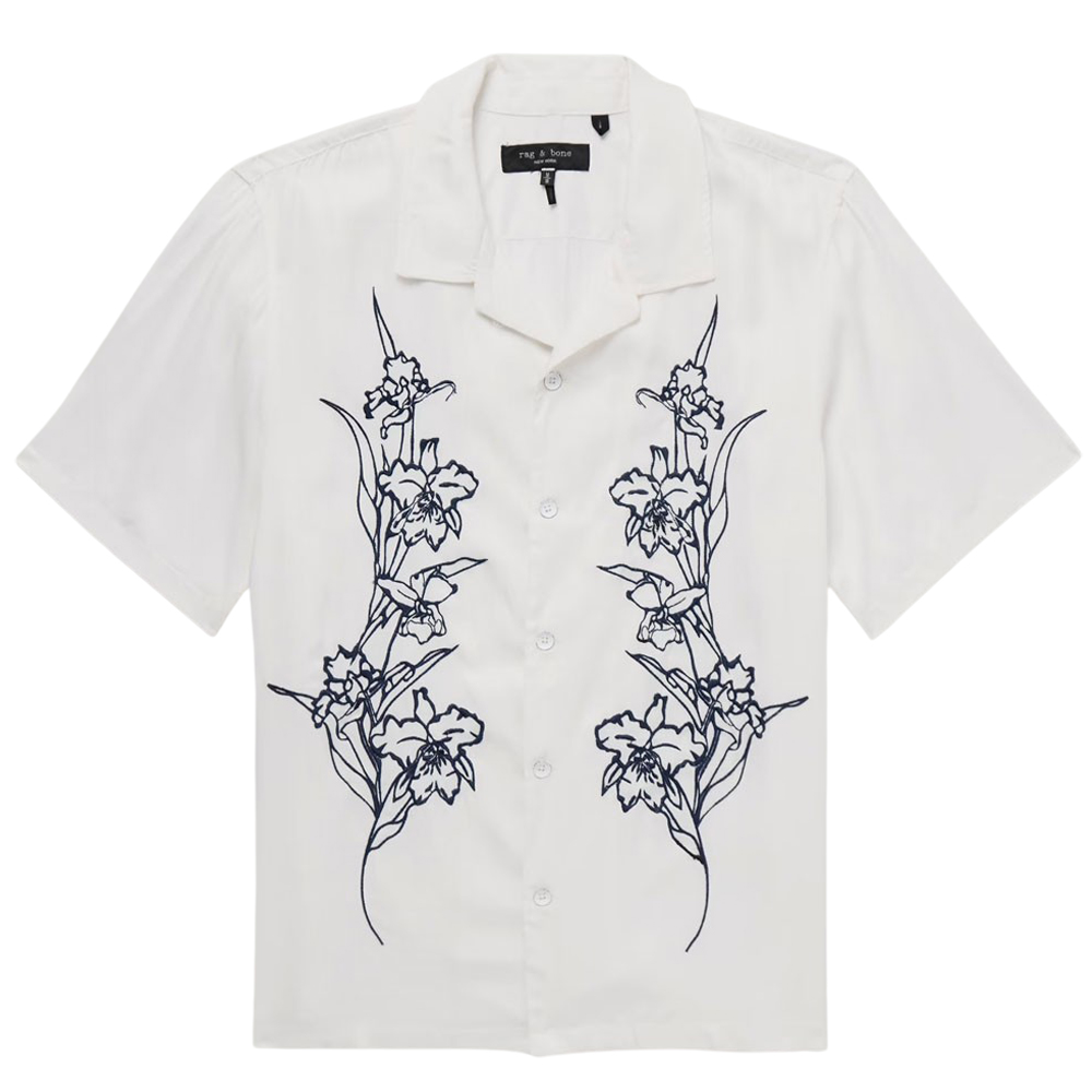 - Rag & Bone Avery Resort Camp-Collar Embroidered Modal-Twill Shirt