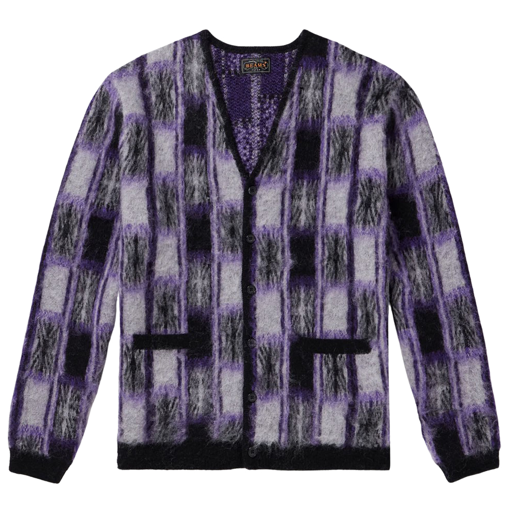 - Beams Plus Checked Jacquard-Knit Cardigan