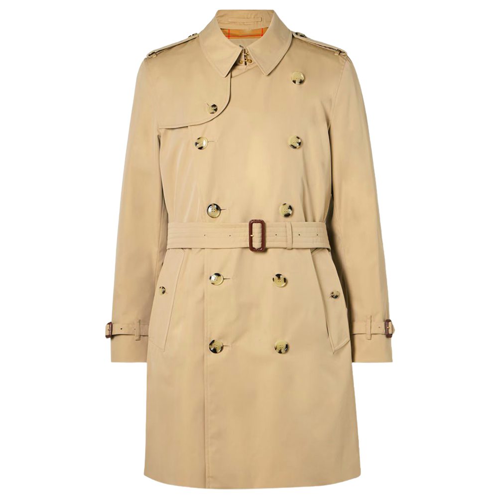 - Burberry Kensington Belted Double-Breasted Cotton-Gabardine Trench Coat