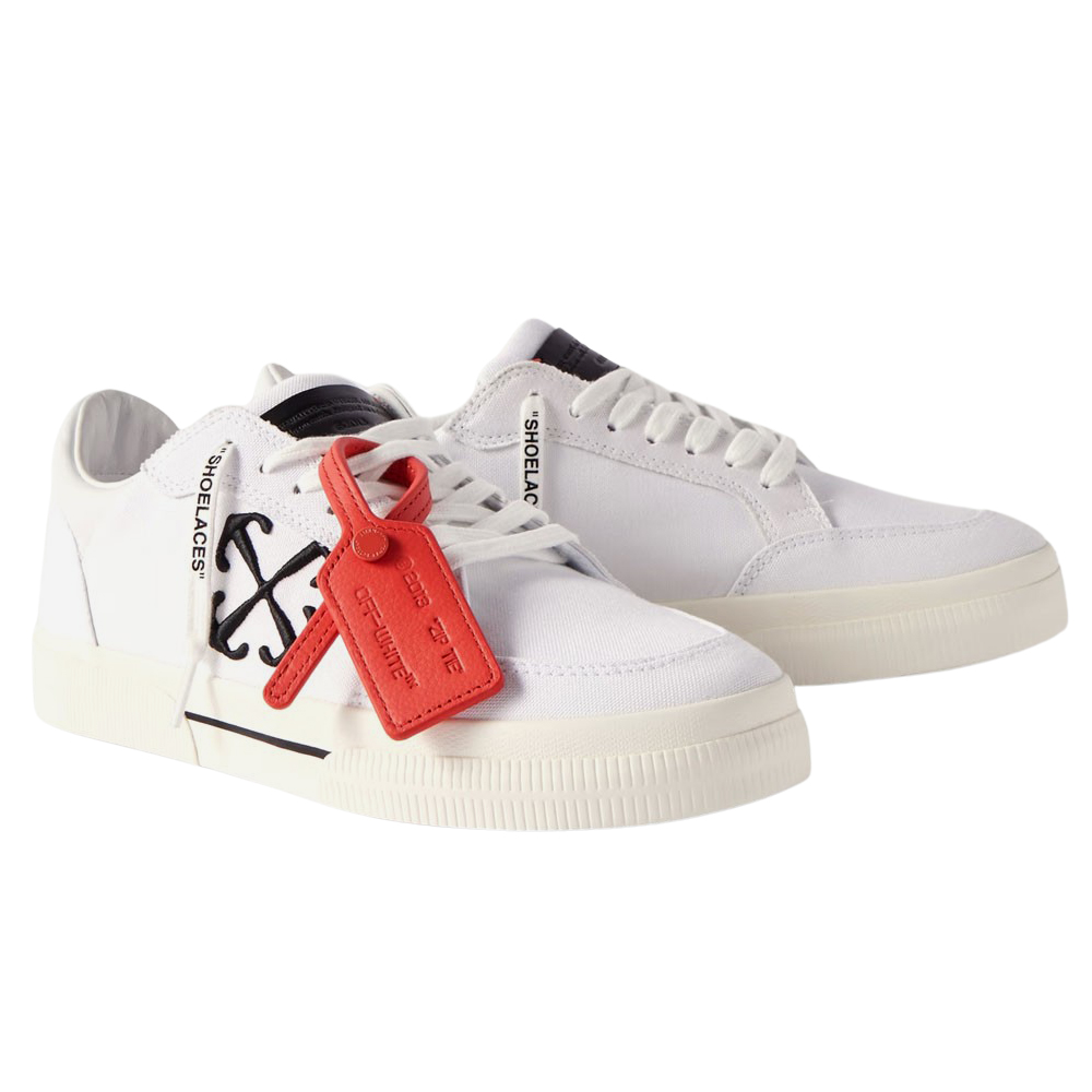 - Off-White Emblem-Embroidered Leather-based-Trimmed Canvas Sneakers
